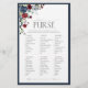 Moderne, elegante vrijgezellenfeest game "What's in Your Purse" met een boeket marineblauw- en bruinkoolbloemen, geborduurd in blauw. Deel van een gecoördineerde suite. De reeks van het uitzicht hier: https://www.zazzle.com/collections/elegant_navy_blue_burgundy_botanical_bridal_shower-119592964187643986 de ontwerper van het contact voor de aanpassing van producten. Copyright Anastasia Surridge voor Elegant Invites, alle rechten voorbehouden.