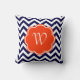 Een aanpasbaar oranje monogram lijst bevindt zich op een achtergrond van een vette blauw-en-wit chevron-patroon.