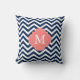 Navy Blue Coral Zigzag Pattern Monogram Kussen