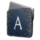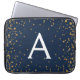 Navy Blue en Gold Confetti Monogram Laptop Sleeve