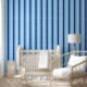 Dit gedurfde marineblauwe en turquoise gestreepte behang ziet er geweldig uit in alle kamers van uw huis. Een traditioneel tijdloos patroon voor de hele kamer of een pop van kleur voor een speelmuur.