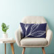 Dit werpt kussen kenmerkt een geïllustreerde, abstracte dichte lijntekening van een marien plant. De kleuren zijn wit en blauw van de marine. Ideaal voor beachy-, kust- of nautische themdecor.