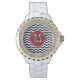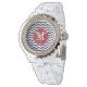 Stijlvol en schattig, deze marineblauw & White Chevron Pattern Monogram Watch is het perfecte accessoire voor elke outfit.
