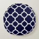 Navy Blue en White Quatrefoil Pattern Rond Kussen