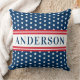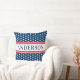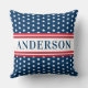 Stijlvolle patriottische kussens in klassieke rode, witte en jaloze blauwe kleuren en sterren en strepen patronen geïnspireerd door de Amerikaanse vlag kenmerkt douanetekst die kan worden gepersonaliseerd met een achternaam of een andere formulering.