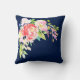 Een gewaagd, helder en doortastend waterverf bloemig afbeelding is de eigenschap op zowel de voorzijde als de rug van deze kussen. Het afbeelding is in kleuren van koraalroze, bleek roze, bleek geel en groen, met touches van tangerine, blauw en violet. De bloemboeket staat links bovenaan tegen een donkerblauw marineschopje. De achterkant van de kussen is identiek aan de voorkant. *Dit ontwerp gebruikt kunstwerk van www.CreateTheCut.com.