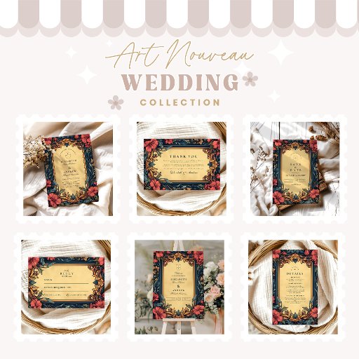 Navy Blue Floral Wedding Art NouveauOntworpen door Andreea Eremia