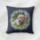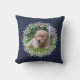 Navy Blue en White Wreath Border Pet Photo Sierkussen - Een tweezijdige gooikussens die twee verschillende foto's kunnen bevatten, één aan elke kant. Creëer uw eigen petfoto werpt kussen door de twee fotomalplaatjes met uw hond, kat, of ander huisdier aan te passen.