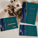 Deze elegante, moderne fan van het huwelijksprogramma heeft een marineblauwe agaat achtergrond afgewerkt met gouden faux glitter. De tekst wordt weergegeven in elegant goudkleurig handschrift en koperplaatlettertypen op een blauwgroen blauwe rechthoek.