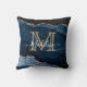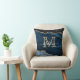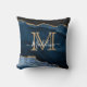 Navy Blue Gold Agate Monogram Name Script Initiaal Kussen