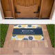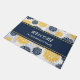 Deze gepersonaliseerde deurmat is voorzien van een blauw en goudbloempatroon voor de boeg en de bodem. In het midden bevindt zich een corresponderende blauw banner voor de marine die met gouden lijnen is bedekt. In het midden is jouw tekst wit. Vet en mooi! Ben zeker om de passende producten in onze opslag te zien. Grafisch bloemontwerpkrediet voor Malachi-Design op Etsy.