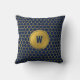 Navy Blue & Gold Hexagon Pattern Monogram Initiaal Kussen