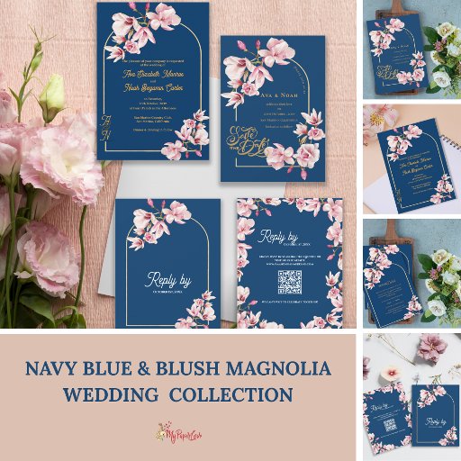 Navy Blue & Blush Magnolia Elegant WeddingOntworpen door Mypaperlove Designs