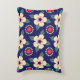 Navy Blue met Cream Flowers Accent Kussen
