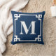 Navy Blue Modern - Grieks sleutelgrensmonogram Kussen