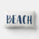 Ideaal voor je bed- of zitgebied - dit blauw en witte strand lumbool gooit kussen met een groot accent op het decor van je huis. Deze kust- of strandhuiswerp bevat het woord 'strand' aan de voorkant en een blauw-witte-zeeslag aan de achterkant.