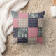 Navy Blue, Pink, Tan en Grey Schattigee Quilt look Kussen