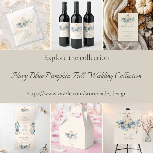 Herfst in liefde, mooie beige ivoren pompoen omringd met zacht marineblauw en bleke beige rozen. De algehele esthetiek is eenvoudig, zacht, romantisch en maakt het een ideale keuze voor een herfstbruiloft. CADE Design © U kunt uw naam en tekst personaliseren. U kunt de tekstkleur en lettertypestijl wijzigen met de optie Aanpassen. LET OP: De kleuren die online worden weergegeven, kunnen enigszins afwijken van het werkelijke product.