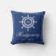 Navy Blue Rudder Monogram & Familienaam Kussen