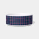 Navy Blue Tartan Plaid met roze, wit en beige streep Pet Bowl heeft een Schots tartan-controlespatroon in tinten marineblauw met roze, wit en geel-gouden strepen. Personaliseer de tekst om de naam van uw huisdier, initialen of wat u maar wilt toe te voegen. U kunt ook een van de afbeeldingen wijzigen of een eigen patroon invoegen. Voor het coördineren en matchen van accessoires of kleding, bezoek onze winkel op zazzle.com/DIYDecor.