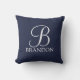 Navy Blue Specialized Script Monogram en Naam Kussen