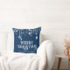 Marine blauw en wit touwtjes lichten sprankelende kerst gooien kussen met een schattig grillig leuk feestelijk vakantie cadeau.
