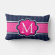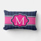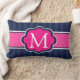 Navy Blue Stripes Hot Pink aangepast monogram Kussen