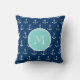 Navy Blue White Anchors Pattern, Mint Green Monogr Kussen