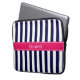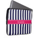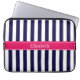 Navy Blue White Stripe Raspberry Name Monogram Laptop Sleeve