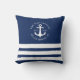 Navy Blue White Stripes Family Monogram Nautisch Kussen