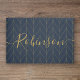 Aangepast ontworpen doormat met een gepersonaliseerde familienaam voor handcalligrafie op een modern jachtpatroon en een gouden decobladpatroon.