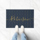 Navy Gold Art Deco Leaf Persoonlijke familienaam Deurmat