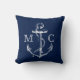 Navy Monogram Nautical White Sketch Anchor | Kussen
