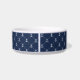Pamper je zeebaars met onze gepersonaliseerde hondenkom, met een patroon van kleine witte nautische ankers op klassiek blauw van de marine, met de naam van je huisdier aan de voorkant.
