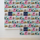 Gepersonaliseerde peel en stick behang bedrukt met een herhaald patroon van uw foto's en uw nautisch thema monogram voor het meerhuis. Nautisch monogram behang gepersonaliseerd met vier van uw foto's in een herhaald patroon. Fotopatroon behang met uw eigen vierkante foto's samen met uw monogram in een nautisch ontwerp met een anker, touwdetails, en groen, jouw naam en het jaar vastgesteld.