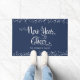 Navy Nieuwjaar Cheer White Script Snowflakes Custo Deurmat