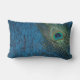 Een levendige pauw blijft leven. De blauwe achtergrond van de marine brengt de levendige kleuren van de vogelveer naar buiten. Dit kussen is uniek en een geweldig geschenk.