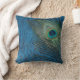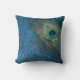 Een levendige pauw blijft leven. De blauwe achtergrond van de marine brengt de levendige kleuren van de vogelveer naar buiten. Deze stoepkussen zijn een geweldig accent voor je woonkamer, op je bed of zelfs in je familiekamer.