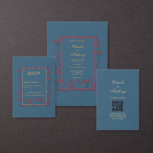 Navy Red Floral Border WeddingOntworpen door Dia Sha