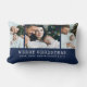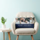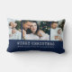 Navy Holiday Photo Sierkussen. Verhef je oprechte gevoelens met ons chique gepersonaliseerde foto vakantie gooi kussen. Deze stijlvolle aandenken, met een lettertype voor schrijfmachines en ruimte voor 3 familiefoto's, is een perfecte mix van nostalgie en stijl. Witte tekst op een groene achtergrond versterkt de visuele aantrekkingskracht. Personaliseer en maak je herinneringen tijdloos!