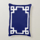Navy White Vine Script Monogram Griekse sleutel DI Accent Kussen
