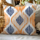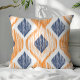Navyblauw en oranje ogee Ikat patroon Kussen