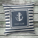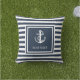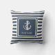 Navyblauw gestreepte nautische anker bootsnaam buitenkussen