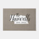 Moderne boerenboerengepersonaliseerde doormat met je familienaam in je staatskaart. Faux burlap canvastextuurachtergrond. Klik op Aanpassen om uw eigen tekst en afbeeldingen toe te voegen en een uniek ontwerp te creëer!