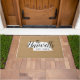 Moderne boerenboerengepersonaliseerde doormat met je familienaam in je staatskaart. Faux burlap canvastextuurachtergrond. Klik op Aanpassen om uw eigen tekst en afbeeldingen toe te voegen en een uniek ontwerp te creëer!