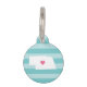 Laat je goede vriend shows wat trots van de thuisstaat met dit schattige label van Nebraska pet-ID. Het ontwerp bevat een witte silhouette kaart van de toestand van Nebraska met een roze hart binnenin, op een toon op de tonus turquoise stripe background. Voeg de naam van uw huisdier en contactinformatie aan de rug in witte letters op een aqua achtergrond toe.