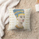 Dit aanpasbare kussen heeft een afbeelding van de Egyptische koningin, Nefertiti tegen een witte achtergrond, voor een betegeld ontwerp van haar cartouche, en een betegeld ontwerp van haar cartouche in goud op de achterkant. De achtergrondkleuren kunnen worden gewijzigd, en het kussen omgekeerd voor een andere look.