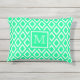 Een trendy neo mint groen en wit kussen, in een geometrisch, diamantpatroon. Personaliseer en voeg uw monogram letter. Perfect voor het buitenleven in de zomer en uw zwembad.