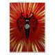 Neolithische Natuur godin met stammenvleugels! Dramatische rode zwarte en gouden wenskaart.