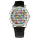 Dit horloge van mannen heeft een geometrisch ontwerp van neondiamanten die elkaar op een gebied van zwart overlappen.